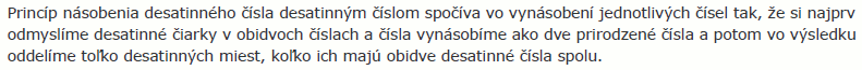 Násobenie desatinného čísla desatinným číslomTeória![]() Príklad č.1![]() Príklad č.2![]() Príklad č.3![]() Príklad č.4![]() Príklad č.5![]() Príklad č.6![]() Príklad č.7![]() Príklad č.8![]() Príklad č.9![]() Príklad č.10![]() |
