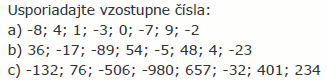 Usporiadanie celých čísel a porovnávanie celých číselTeória![]() Príklad č.1![]() Príklad č.2![]() Príklad č.3![]() Príklad č.4![]() Príklad č.5![]() Príklad č.6![]() |