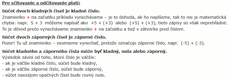 Sčitovanie celých čísel a odčitovanie celých číselTeória![]() Príklad č.1![]() Príklad č.2![]() Príklad č.3![]() Príklad č.4![]() Príklad č.5![]() Príklad č.6![]() Príklad č.7![]() |