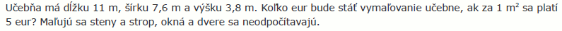 Slovné úlohyTeória![]() Príklad č.1![]() Príklad č.2![]() Príklad č.3![]() Príklad č.4![]() Príklad č.5![]() Príklad č.6![]() Príklad č.7![]() Príklad č.8![]() |