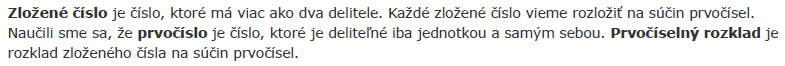 Prvočíselný rozklad zloľeného číslaTeória![]() Príklad č.1![]() Príklad č.2![]() Príklad č.3![]() Príklad č.4![]() Príklad č.5![]() Príklad č.6![]() Príklad č.7![]() Príklad č.8![]() Príklad č.9![]() Príklad č.10![]() Príklad č.11![]() Príklad č.12![]() Príklad č.13![]() |