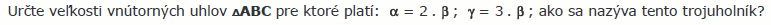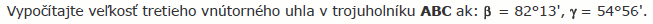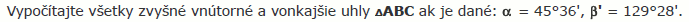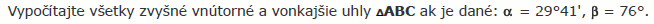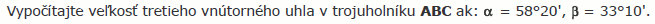 Vnútorné a vonkająie uhly trojuholníkaTeória![]() Príklad č.1![]() Príklad č.2![]() Príklad č.3![]() Príklad č.4![]() Príklad č.5![]() Príklad č.6![]() Príklad č.7![]() Príklad č.8![]() Príklad č.9![]() Príklad č.10![]() |