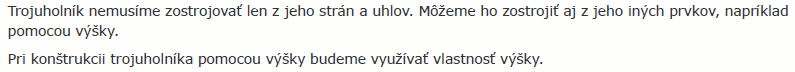 Konątrukcia trojuholníka pomocou výąkyTeória![]() Príklad č.1![]() Príklad č.2![]() Príklad č.3![]() Príklad č.4![]() Príklad č.5![]() |