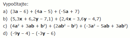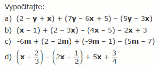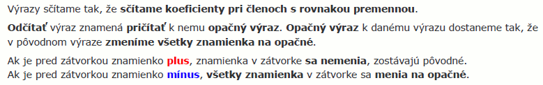 Sčitovanie a odčitovanie celistvých výrazovTeória![]() Príklad č.1![]() Príklad č.2![]() Príklad č.3![]() Príklad č.4![]() Príklad č.5![]() |