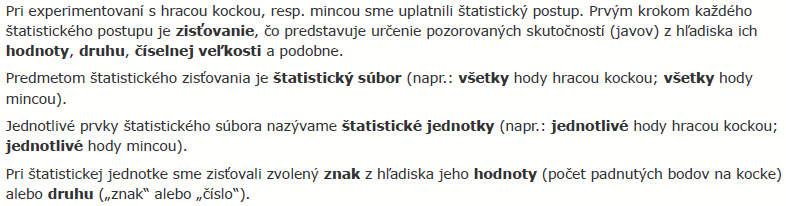 ©tatistický súbor, jednotka, znak